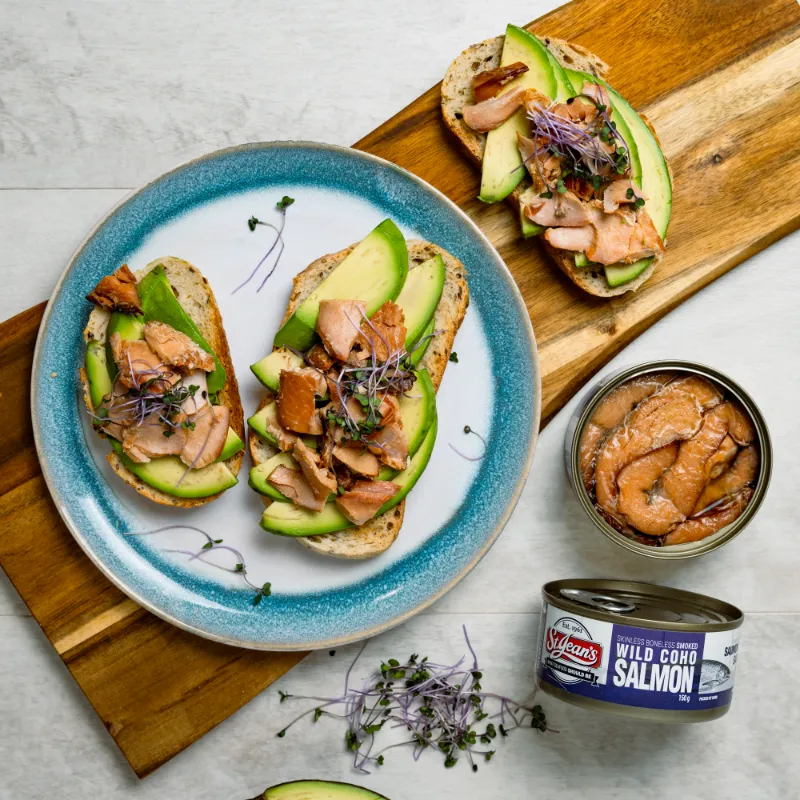 Indulge your palate in the definitive seafood experience with St. Jean’s Canned Smoked Wild Coho Salmon. Order now and discover why our smoked coho salmon is the perfect complement to any meal or snack.